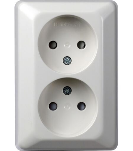 Polarhvit, dobbel stikkontakt fra Elko for montering på vegg. Stikkontakten er ikke jordet, men har barnevern og er fullstendig halogenfri. Leveres med bakplate. Vi er etter Forskrift om elektrisk utstyr § 21 pliktig til å informere våre forbrukere at installasjonsmateriell ment for å kunne inngå i et fast elektrisk anlegg kan kun installeres av en registrert installasjonsvirksomhet. Unntatt er elektrisk materiell som utelukkende er ment for bruk i faste teleinstallasjoner, og elektrisk materiell som forbruker selv lovlig kan installere. ...