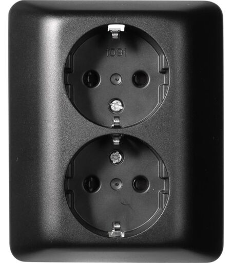 Sort, innfelt dobbel jordet stikkontakt med hel dekkplate og barnevern. Vi er etter Forskrift om elektrisk utstyr § 21 pliktig til å informere våre forbrukere at installasjonsmateriell ment for å kunne inngå i et fast elektrisk anlegg kan kun installeres av en registrert installasjonsvirksomhet. Unntatt er elektrisk materiell som utelukkende er ment for bruk i faste teleinstallasjoner, og elektrisk materiell som forbruker selv lovlig kan installere. ...