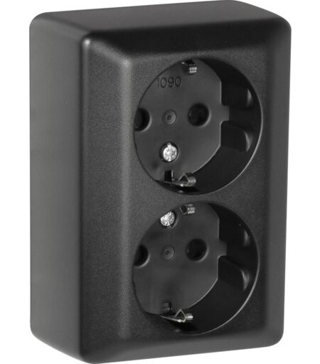 Stikkontakt Dobbel påvegg jord RS1090 PT Sort Elko - 1511799