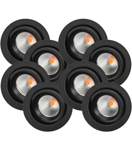 SG Junistar Eco Isosafe Sort 6W DimToWarm 8st Kostnadseffektiv downlight for innendørs bruk med 42° lysspredningsvinkel og 30° vipp i to retninger. Dimbar med faseavsnittdimmer. Lav innbyggingshøyde og enkel montering rett i isolasjonen. En fleksibel hulldiameter på Ø68-83mm gjør SG Junistar Eco Isosafe Sort 6W DimToWarm til et godt valg for rehabilitering av eldre tak. Nå med lavere innfellingshøyde 40mm – passer med 30mm lekter. ...
