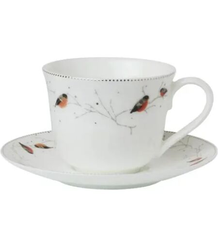 Dompap kaffekopp med skål, 22 cl, er et lite og elegant sett som passer perfekt når du skal nye kaffen din. Skålen er designet for å passe til koppen og gir en fin helhet når du serverer. Dette settet harmonerer utmerket med andre deler i Dompap-serien, og er ideelt for å skape en koselig atmosfære når du nyter kaffe og kaker sammen med venner og familie. Med sitt stilige design i benporselen tilfører det et preg av eleganse til borddekkingen.Dompap - Det perfekte vinterservisetHva er vel koseligere enn en liten, lubben, rød fugl på en rimfrostet gren? Dompap-serviset er utviklet med den norske vinteren i tankene og er det perfekte vinterservise til julehøytiden. Den fargesterke dompapen skinner på dette elegante penserviset i benporselen, satt mot et bakteppe av blekt vinterlys og nakne grener. Med små, luksuriøse detaljer i ekte platina tilfører Dompap-serviset både varme og eleganse til ethvert dekket bord. Serviset er designet av Maud Gjeruldsen Bugge og laget for å skape koselige stunder. ...