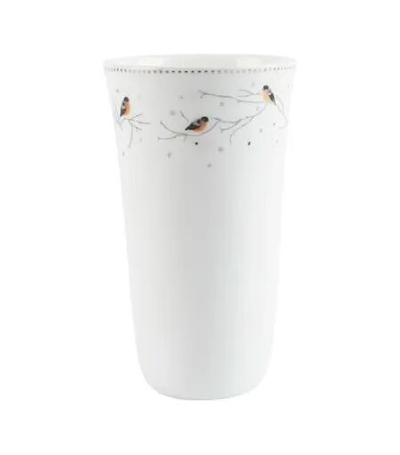 Vasen fra Dompap-serien, 21 cm høy, er en vakker dekorasjon som står flott alene eller som en del av borddekkingen. Den elegante designen i benporselen tilfører en sofistikert touch til ethvert rom. Fyll den med friske blomster eller grener for å skape en koselig atmosfære, perfekt for vinterens høytider.Dompap - Det perfekte vinterservisetHva er vel koseligere enn en liten, lubben, rød fugl på en rimfrostet gren? Dompap-serviset er utviklet med den norske vinteren i tankene og er det perfekte vinterservise til julehøytiden. Den fargesterke dompapen skinner på dette elegante penserviset i benporselen, satt mot et bakteppe av blekt vinterlys og nakne grener. Med små, luksuriøse detaljer i ekte platina tilfører Dompap-serviset både varme og eleganse til ethvert dekket bord. Serviset er designet av Maud Gjeruldsen Bugge og laget for å skape koselige stunder.Størrelse: 12,4 x 12,4 x H 12,1 cmMateriale: Benporselen ...