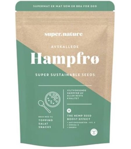 Supernature Hampfrø brukes der du ellers ville brukt nøtter. Smaker nydelig og er rike på magnesium, vitamin E, protein, kostfiber og omega-3. Hamp blir stadig mer populært, ettersom produksjonen er svært bærekraftig. Frøene er avskallet, men ellers helt ubehandlet. Helt rått. Helt enkelt! Ingredienser:Avskallede hampfrø. Kan inneholde spor av peanøtter og andre nøtter.Vitamin E bidrar til å beskytte cellene mot oksidativt stress. Magnesium bidrar til normal energiomsetning og til å redusere tretthet og utmattelse. Innhold:150 g ...