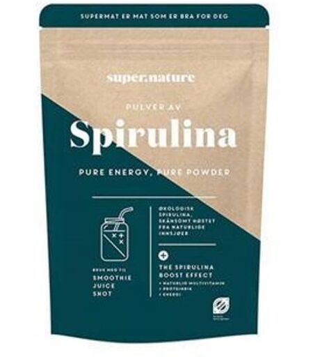 Spirulina er naturens egen energiboost! Tilsett 2 ts spirulina i smoothien din og tilfør like mye jern som fra 100 g biff! Den næringsrike algen omtales ofte som naturens alt-i-ett, rik på protein og viktige vitaminer og mineraler. Den sjøgrønne fargen kommer av naturlig innhold av klorofyll (grønn) og fyocyanin (blå) – akkurat som fargene fra brokkoli og blåbær.Pulveret kan enkelt brukes i shake, juice eller smoothie. Du finner også spirulina i tablettform. Ingredienser:Pulver av økologisk Spirulina (Arthrospira platensis). Proteiner bidrar til vekst og opprettholdelse av muskelmassen. Robofalvin bidrar til normal energiomsetning og bidrar sammen med jern også til å redusere tretthet og utmattelse. Oppskrift:1-2 ts Supernature Spirulina10 cm agurk2-3 never spinat1 cm frisk ingefær3 dl eplejuiceSaften av limeIsbiterHa alt i blender - nyt!TIPS! Vil du heller lage smoothie bowl? Tilsett avokado, banan eller mindre væske. Har du dårlig tid? Frossen frukt eller ferdig smoothiemiks fra butikken kan fint erstatte frisk frukt og grønt. Innhold:150 gr ...
