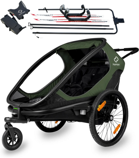 Hamax Outback Double, Skivogn og Sykkelvogn, Grønn (med skisett)