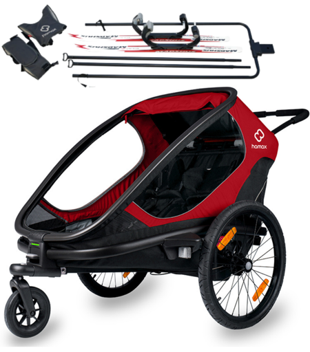 Hamax Outback Double, Skivogn og Sykkelvogn, Rød (med skisett)