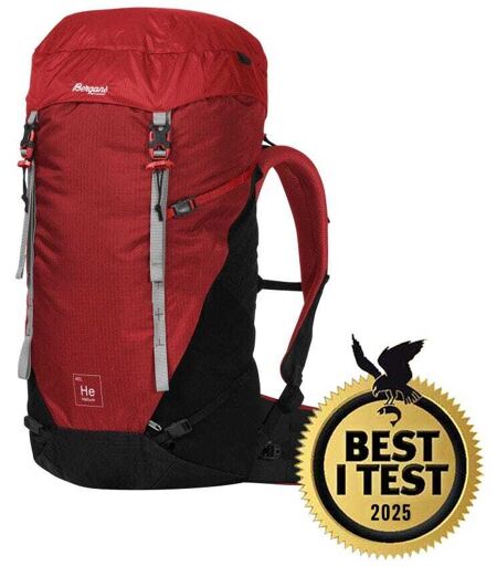 Bergans Helium V5 40 liter - ultralett tursekk for dagsturene. "Best i Test" lette dagstursekker - Villmarksliv 02/25. Bergans Helium V5 er den siste generasjonen i en ryggsekkfamilie som har besøkt alle verdens hjørner (inkludert de tre polene) - Heliumsekkene har lenge vært førstevalget til både erfarne polfarere og vanlige turgåere. Denne generasjonen av Helium-ryggsekken er laget med et eget spesialmateriale av høykvalitets Nylon 66 og Black Dyneema® ripstop. Resultatet er et utrolig robust og slitesterkt materiale. Selv om sekken er ultralett, er det ikke kompromisset med bærekomforten. Kombinasjonen av justerbar rygglengde, skulderrem med Triple Density-skum og et formsydd hoftebelte gir en svært god bæreopplevelse. Vekten er fortsatt blant de laveste sammenlignet med andre ryggsekker i samme størrelse og med samme bærekomfort. Helium V5 40 er designet slik at den kan gjøres om til en enklere og mye lettere versjon av seg selv. Hvis du vil bære virkelig lett, kan du ta av hoftebeltet og lokket og kombinere dem til en hoftesekk. Smart og enkelt! En annen forskjell sammenlignet med tidligere versjoner er den hele, diagonale glidelåsåpningen som gir deg superenkel tilgang til innholdet. Ellers er Helium fortsatt den samme allsidige og svært funksjonelle friluftssekken den alltid har vært gjennom sin 20 år lange karriere. Topplokk: Avtakbart topplokk (sparer 55 gram vekt). Lokket er også høydejusterbart og har en stor utvendig lomme med nøkkelring. Hoftebeltet og lokket kan tas av og kombineres til en liten hoftesekk. Bæresystem: Bergans QuickAdjust PRO, justerbar rygglengde. Justerbare toppstrammere. Myk, behagelig og ventilerende air mesh på skulderrem og hoftebelte. Skulderrem vattert med Dual Density-skum. Sekkepose: Den klassiske toppåpningen med snølås kombinert med diagonal glidelås foran gir enkel tilgang til innholdet. Doble kompresjonsremmer på hver side. Slitesterkt, komfortabelt og kraftig Nylon 66 materiale i kombinasjon med ripstop av Dyneema®, verdens letteste, sterkeste og mest allsidige fiber. Lommer: Store, åpne sidelommer i mesh. Stor utvendig lomme på topplokket. Hoftebelte: Hoftebelte med god bevegelighet. Komfortabelt Dual Density-skum med Iliac Crest Relief. Justerbart hoftebelte med Pull Forward-system. Festepunkter for pulk. Stabiliserende stropper som bedrer stabiliteten ved at ryggsekken kan trekkes nærmere kroppen. Hoftebeltet er avtakbart (sparer 165 gram vekt). Ytterligere funksjoner: Klargjort for drikkesystem. Justerbar brystrem. Bærehåndtak på toppen. Nøkkelkrok. Rikelig med festepunkter til for eksempel ski, vandrestaver og isøks. Bergans PLUS Modular-festesystem. To multifunksjonelle PLUS-utstyrsremmer følger med ryggsekken. YKK glidelåser. Produktet inneholder bluesign® approved fabrics and trimmings. Spesifikasjoner Volum: 40 liter. Vekt: 910 gram. Rygglengde: 45 - 56 cm. Hoftebelte, lengde: 85 - 140 cm. Anbefalt pakkvekt, opp til: 15 kg. Utvendige mål, pakket (HxBxD): 60 x 26 x 25 cm. Kvalitet: Nylon 66 med... ...