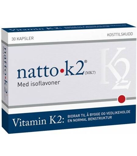 Natto er ekstrakt fra den japanske matretten med samme navn, som består av fermenterte soyabønner. Studier viser at det er lavere forekomst av benskjørhet (osteoporose) i de delene av Japan der Natto er en vanlig del av kostholdet. Forskerne mener at det er K-vitaminet som står for denne effekten. Dette underbygges av studier som viser at de som lider av benskjørhet har lavere verdier av K-vitamin i blodet. I Norge spiser vi forholdsvis lite mat som inneholder vitamin K. Derfor kan Natto K2 være et godt tilskudd for å ta vare på skjelettet, spesielt for kvinner og menn fra 45 år og oppover. Vitamin K2 er viktig for at kroppen skal kunne lage det ”limet” som gjør at mineralene festes til skjelettet. Natto K2 stimulerer cellene som danner benvev (osteoblastene) og hemmer cellene som bryter ned benvev (osteoklastene). Sammen med Natto K2 bør du også bruke et kombinert kalsium- og magnesiumtilskudd, som inneholder benvevets byggematerialer: mineralene kalsium og magnesium i tillegg til D3-vitamin. 200 ug Nattoekstrakt pr kapsel Innhold:30 kapsler200 ug Nattoekstrakt pr. kapsel ...