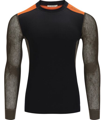 Aclima Men's WoolNet Hybrid Crew Neck Jet Black/Tarmac/Gold Flame XXL