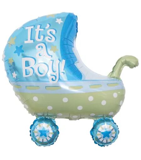 Pynt til babyshower eller en overraskelsesfest med denne flotte ballongen formet som en barnevogn med teksten It's a Boy! på. I pakken får du 1 stk ballong den er i størrelsen: 70x71 cm.Farge: Blå.Alder: 3 år +. ...