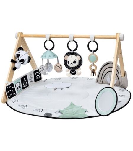 Tiny Love Babygym har et unikt designet med en frittstående, naturlig trebue, kombinerer denne elegante aktivitetsmatten kontrasterende farger med moderne stil, og gir både underholdning for babyen og en trendy dekorasjon til hjemmet ditt. Fra nyfødt til sittende fase vil babyen glede seg over 20 engasjerende aktiviteter som fremmer viktige milepæler gjennom lek og utforskning.Gymini® inkluderer også 12 milepælskort med nyttige utviklingstips, morsomme leketidsideer og måter å fange og dele verdifulle øyeblikk gjennom det første spennende året.Alderstips:0-3+ måneder: STIMULERER SANSER OG TRENE MOTORISKE FERDIGHETERKontrast farger, morsomme teksturer og engasjerende lyder stimulerer babyers sanser fra de aller første dagene. Den vakre samlingen av aktiviteter og leker vil inspirere babyen din til å øve ferdigheter og tilbringe mer tid i magen. La babyen din øve øye-hånd-koordinasjon ved å prøve å strekke ut og ta på lekene.2+ måneder: TUMMY TIMEBruk de engasjerende aktivitetene og teksturene for å oppmuntre babyen din til å tilbringe mer tid i magen, og styrke musklene som forberedelse til utviklingsmilepælene fremover. Trekk babyens oppmerksomhet til de forskjellige teksturene til leketøyet..6+ måneder: FORSTÅ ÅRSAK OG VIRKNINGNår babyen din er eldre, er det på tide å fortsette å utforske de ulike funksjonene, aktiver den elektroniske musikk løven, kose seg med peek-a-boo-spillet osv. Dette vil fremme den lilles kognitive utvikling. ...