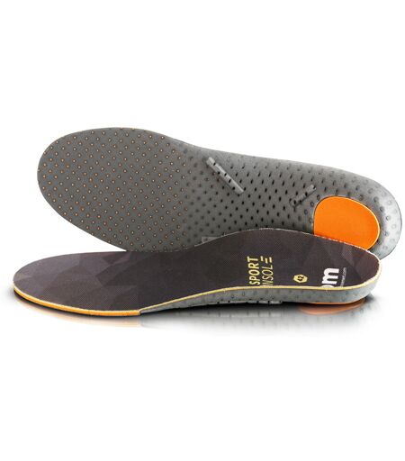 Sport Insole fra Ortho Movement er såler til sportskoene dine. Når du driver med ulike idretter, blir belastningen på kroppen din økt med opptil 8 ganger kroppsvekten din. Dette skyldes de ulike flyfasene som oppstår når aktiviteter utføres og mottas av foten. Bevegelsesmønsteret er komplekst og stiller store krav til kroppen din. Ortho Movement har samlet inn data fra idrettsutøveres forskjellige føtter over hele verden. Det er denne informasjonen, de forskjellige belastningsmønstrene ved aktiviteter og dagens utforming av sportsko som danner grunnlaget for design og funksjon av Sport Insole. Formålet med sålene er å redusere belastningen på idrettsutøverens muskler og ledd for å skape bedre forutsetninger for alle som elsker å utøve idretten sin, uansett profesjonelt nivå eller alder. De orange D3O® sonene gir hælen, leddene og skjelettet ekstra støtdemping for å avlaste kroppen. Sonens form og plassering er spesielt tilpasset idrettsutøvernes trykkmønstre når de utfører ulike idretter.Den lengdegående fotbuestøtten er unikt utformet for å passe så mange fotformer som mulig.Det grå E.V.A-materialet er et levende dynamisk materiale som gir en kombinasjon av ekstra støtte og støtdemping, noe som reduserer rotasjonskreftene.De tre barrierene ved de to lengdegående fotbuene øker deres naturlige funksjoner og øker stabiliteten ved hvert steg.Den anatomiske hælkoppen fordeler trykket under hælen og reduserer belastningen ved å trekke sammen hælens fettpute og styrke dens naturlige funksjon.Topplaget reduserer risikoen for gnagsår og blemmer.Fjern de eksisterende innleggssålene fra skoene dine. Plasser de nye Sport Insole i skoene dine for å sikre riktig størrelse. Hvis nødvendig, trim de nye Sport Insole med saks hvis de ikke passer. Tips: Bruk de opprinnelige sålene som mal! Øk gradvis bruk av de nye Sport Insole siden det kan oppstå nye belastningsmønstre på kroppen din.Rengjøring: Sålene tåler ikke høye temperaturer. Du kan bruke lunkent vann og såpe for rengjøring. Tørk ved romtemperatur. Ikke vask i vaskemaskin.Bytt ut sålene etter 6-12 måneder eller når de viser tegn på slitasje. ...