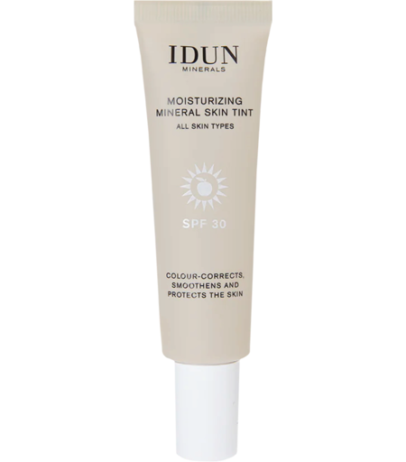 IDUN Minerals Moisturizing Mineral Skin SPF 30 Deep er en farget dagkrem med lett dekkevne og glødende finish, som holder huden fuktet og gir solbeskyttelse med solfaktor 30. IDUN Minerals Moisturizing Mineral Skin SPF 30 Deep inneholder en høy solbeskyttelse på grunn av mineralfilter, noe som gjør produktet egnet også for sensitiv hud. Den veganske formulaen kjennes lett på huden og jevner ut hudtonen for et naturlig resultat. Utviklet med hudvennlige ingredienser og antioksidanter i tillegg til vitamin C og E som beskytter huden. Dagkremen er tilgjengelig i 6 nyanser, fra lys til mørk. ...