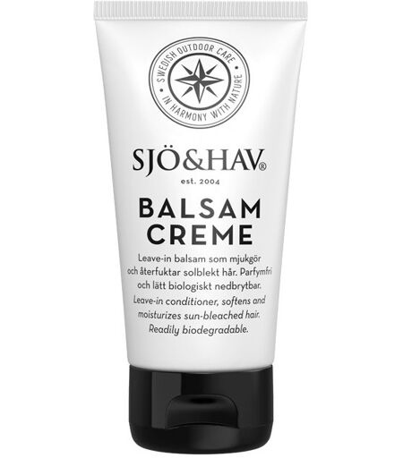 Balsamkrem fra Sjø & Hav er en balsamkrem med leave-in funksjon som kan brukes utendørs, for eksempel under fjellvandring. Produktet er parfymefritt og lett biologisk nedbrytbart for minimal påvirkning på sensitivt miljø. Vask først håret med Sjø & Hav Utendørsshampo for saltvann, ta deretter en liten mengde balsam, mindre enn en krone, og masser inn i håret, fra tuppene og oppover. La kremen være i håret. Resultatet blir mykt og lett hår, og du trenger ikke å dyppe hodet igjen, med mindre du ønsker det. Innhold: Aqua, Cetearyl Alcohol, Distearoylethyl Hydroxyethylmonium Methosulfate, Behenamidopropyl Dimethylamine, Glyceryl Stearate, Shea Butter Ethyl Esters, Lactic Acid, Panthenol, Betaine, Tocopheryl Acetate, Citric Acid, Phenoxyethanol, Dehydroacetic Acid, Benzoic Acid. ...