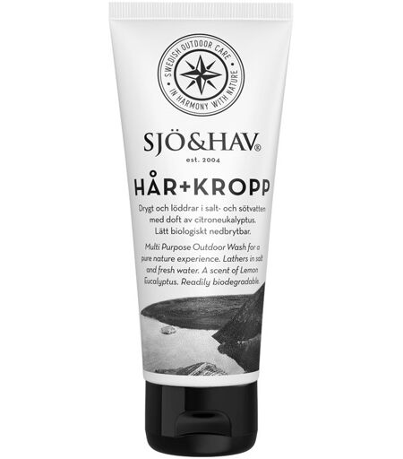 Hår + Kropp fra Sjø og Hav er en drøy og mild multirengjøring som kan brukes utendørs. Multirengjøringen er en kombinasjon av såpe og sjampo designet for deg som vil ha minimalt med pakning på eventyret. Produktet har en frisk og behagelig duft av sitroneukalyptus som mygg og knott ikke foretrekker. Produktet er lett biologisk nedbrytbart for minst mulig påvirkning på sensitiv miljø. Hvis mulig, filtrer vann med såperester gjennom jordlaget litt unna vannkilden. Bruk sparsomt og med omtanke. Innhold: Aloe Barbadensis Leaf Juice, Sodium Laureth Sulfate, Aqua, Cocamidopropyl Betaine, Sodium Chloride, Decyl Glucoside, Betaine, Glycerin, Polyglyceryl-4 Caprate, Hydroxypropyl Guar, Hydroxypropyltrimonium Chloride, Eucalyptus Citriodora Oil, Citric Acid, Caramel, Phenoxyethanol, Potassium Sorbate, Sodium Benzoate. ...