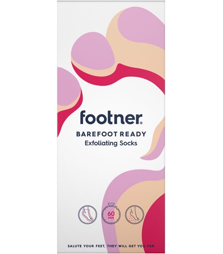 Footner Exfoliating Socks fjerner uønsket død hud fra føttene uten kutting eller filing. Footner Exfoliating Socks er en rask og enkel løsning for deg som ønsker å kvitte deg med hard, tørr og sprukken hud på føttene! Footner Exfoliating Socks er et par plastsokker som brukes i 60 minutter for så å gi fine og myke føtter etter en uke, uten at man behøver å smøre eller file. Behandlingen fremskynder kroppens egen prosess med å kvitte seg med døde hudceller. Hard og tørr hud vil begynne å løsne etter ca. 3–7 dager etter behandlingen. Prosessen pågår deretter i ca. 5–7 dager, og resulterer til slutt i herlige myke og fine føtter. Tips! Avflassingen er noe udelikat, og det anbefales at behandlingen gjøres noen uker før du planlegger å vise frem de flotte, myke føttene dine. ...