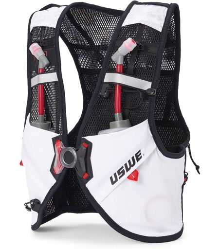 Pace 8 fra Uswe er en minimalistisk løpevest med No Dancing Monkey™-systemet og elastiske sidepaneler som holder vesten stabil mens du beveger deg raskt fremover. To vannflasker på 500 ml hver er inkludert og er raskt tilgjengelige. Det er festemuligheter for løpestaver og lommer for energibarer, mobiltelefonen og andre småting. Inne i vesten er det en tettsittende lomme med plass til en 1,5 liters væskeblære (ikke inkludert). No Dancing Monkey™-systemet og elastiske sidepaneler holder vesten stabil mens du beveger deg, samtidig som vesten følger kroppens bevegelser og lar deg puste normalt No Bounce Compression Compartment™ på innsiden holder en væskeblære sikkert på plass (væskeblære ikke inkludert) 2x 500 ml vannflasker plassert i 45º vinklede frontlommer Feste for løpestaver 2x lettilgjengelige frontlommer 2x lommer på skulderremmene for gel og energibarer 2x baklommer med glidelås Høyt ventilerende ryggpanel i mesh Reflekser ...