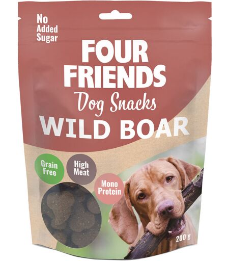 Nå kan du belønne hunden din med sunn snacks som samtidig booster helsen. Oppskriften er enkeltprotein, noe som passer godt for sensitive hunder, og selvfølgelig er de kornfrie godbitene. De er fullpakket med naturlige antioksidanter som beskytter cellene, og inneholder pH‑nøytralt C‑vitamin som styrker immunforsvaret. Rosmarinekstrakt stimulerer fordøyelsen, og godbitene er rike på sunne omega‑fettsyrer som bidrar til frisk hud og blank pels. I denne godbiten har vi tilsatt tranebær.Sammensetning: Tørket villsvinkjøtt, erter, tørkede epler, kyllingfett (silt og helt proteinfritt, konservert med blandede tokoferoler), tørket tranebær 4 %, linfrø 4 %, lakseolje 1 % (silt og helt... ...