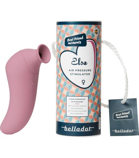 Belladot Elsa Lufttrykksvibrator er en kombinert klitorisstimulator, som ved hjelp av både vibrasjon og pulserende lufttrykk tar nytelsen din til nye dimensjoner. Belladot Elsa Lufttrykksvibrator er liten men kraftfull. Vibratoren benytter seg av pulserende lufttrykk og/eller vibrasjon for å hjelpe deg, å oppnå orgasme gjennom stimulering direkte på klitoris eller området rundt. Den innovative teknologien gir deg nesten uendelige valgmuligheter og intens stimulering. Eksperimenter med Elsa og bli fasinert over hvor lett hun blir din nye beste venn! Belladot Elsa Lufttrykksvibrator kan også gjøre opplevelsen mer intens. Formen er ergonomisk utviklet og har et elegant design med en myk og matt overflate. Størrelsen gjør at den er enkel å ta med seg overalt. Vibratoren er vanntett og kan gjerne tas med i dusjen. Materiale: Silkemyk silikon (PU-belagt). Stoffpose for oppbevaring medfølger. Ergonomisk design. Ti forskjellige vibrasjonsmønstre og ti forskjellige lufttrykksmoduser. To intuitive knapper. Oppladbart batteri med 60-80 minutters batterilevetid. Ett års garanti. Angreretten på denne varen kan kun benyttes dersom forseglingen ikke er brutt. Belladot er en innovativ og seriøs serie innen sexhjelpemidler som kan nytes både av menn og kvinner. Lyst og helse går hånd i hånd. Produktene fokuserer på høy kvalitet, humor og lek og er laget av myke materialer som kjennes godt mot huden. Produktene er enkle å bruke og attraktive å se på. De er alle designet sammen med en sexolog da Belladot ønsker være sikker på at produktene fungerer på best mulig måte for alle parter og aspekter. Utvalget består av f.eks. vibratorer, penisring, ereksjonspumpe og ulike glidemiddel og massasjeoljer. ...