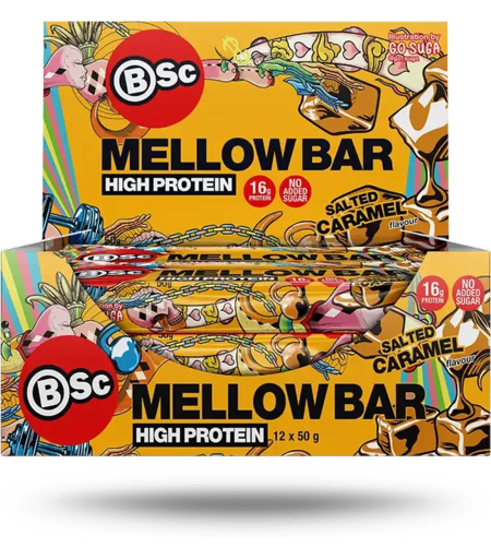 BSC Mellow Bar - 50g Diverse smaker - Salted Caramel, Hel eske (12 stk)