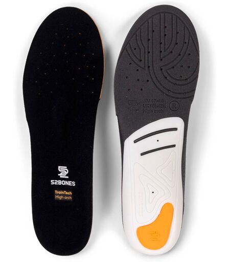Traintech fra 52bones er en oppbygd sportsåle som kommer i tre fotbuehøyder, og gir optimal støtte og maksimal demping for foten i alle typer sko. Perfekt for aktiviteter som løping, gange, golf og trening. Skosålen forebygger fot-, kne- og leddproblemer, og gir også dynamisk støtte for fotbuen, noe som betyr at den gir stabilitet under aktivitet samtidig som den tillater fotens naturlige bevegelse. TrainTech LOW har en fotbuestøtte som er 28 mm høy og tilpasset for å gi støtte til lave fotbuer. En lav fotbue betyr at den langsgående fotbuen er senket og trenger støtte når du går i sko.TrainTech MID er en slank sportsåle med en fotbuestøtte som er 33 mm høy og tilpasset for å gi støtte og avlastning til midt- eller nøytrale fotbuer under aktivitet.TrainTech HIGH har en fotbuestøtte som er 38 mm høy og tilpasset for å gi støtte til høye fotbuer. En høy fotbue kan føre til at føttene føles ømme, slitne og stive. ...