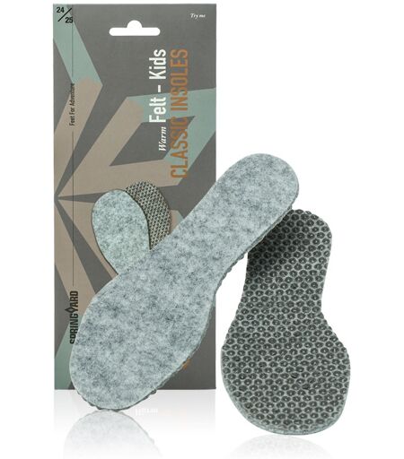 Felt Kids er en varm og myk såle i filt med sklisikker bunn. Holder føttene tørre for økt komfort i skoene. Barne størrelser. ...