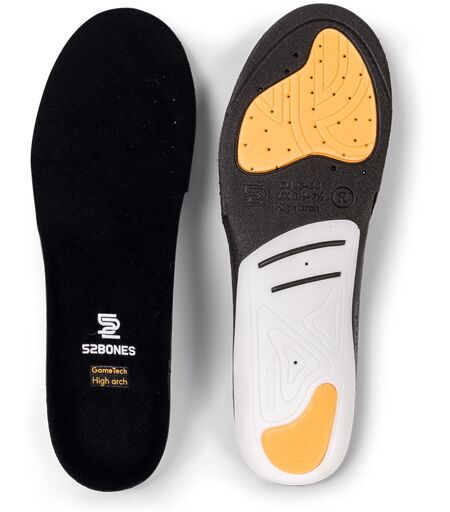 Gametech fra 52bones er en oppbygd sportsåle som kommer i tre forskjellige høyder for høybuen. Den gir optimal støtte og maksimal demping. Du kan enkelt tilpasse sålen til din fotbue, og sportsålen gir støtdemping både i hælen og forfoten, noe som gjør den perfekt for idretter med rask start og stopp. Det er en ideell såle for ballsporter som padel, tennis, håndball og basketball. Sålen forebygger fot-, kne- og leddproblemer, samtidig som den gir dynamisk støtte til fotbuen. Dette gir stabilitet under aktivitet og tillater samtidig fotens naturlige bevegelse. GameTech LOW er en sportsåle for lav fotbue og har en fotbuestøtte som er 28 mm høy og tilpasset for å gi støtte til lave fotbuer. En lav fotbue betyr at den langsgående buen i foten er senket og trenger støtte når du går i sko.GameTech MID – har en fotbuestøtte som er 33 mm høy og tilpasset for å gi støtte og avlastning til midthøye eller nøytrale fotbuer.GameTech HIGH er en sportsåle for høy fotbue som har en fotbuestøtte som er 38 mm høy og tilpasset for å gi støtte til høye fotbuer. En høy fotbue kan føre til ømme, slitne og stive føtter. ...