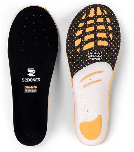 Slimtech fra 52bones er en sportsåle som er konstruert for å gi optimal støtte og maksimal demping. Sålen er lett, smidig og har en slank profil. Den passer best til sko med tettsittende passform og har ekstra kraftig demping for hælen. Perfekt for aktiviteter som fotball, sykling, langrenn eller skøyter. Skosålen forebygger fot-, kne- og leddproblemer og gir også dynamisk støtte til fotbuen, slik at den gir stabilitet under aktivitet samtidig som den tillater fotens naturlige bevegelse. SlimTech LOW - har en fotbuestøtte som er 28 mm høy og er tilpasset for å gi støtte til lave fotvalv. Et lavt fotvalv betyr at det langsgående fotvalvet (fotbuen) er senket og trenger støtte når du går med sko.SlimTech MID er en slank sportsåle med en fotbuestøtte som er 33 mm høy og er tilpasset for å gi støtte til og avlastning for middels høye eller nøytrale fotvalv under aktivitet.SlimTech HIGH er en sportsåle med en fotbuestøtte som er 38 mm høy og er tilpasset for å gi støtte til høye fotvalv. Et høyt fotvalv kan føre til at føttene føles ømme, slitne og stive. En fotbueinnlegg avlaster og gir støtte. ...