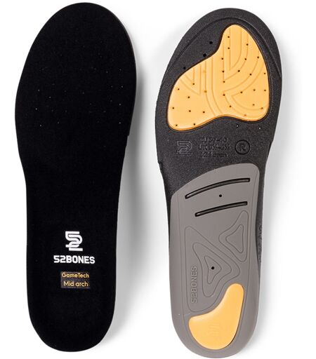 Gametech fra 52bones er en oppbygd sportsåle som kommer i tre forskjellige høyder for høybuen. Den gir optimal støtte og maksimal demping. Du kan enkelt tilpasse sålen til din fotbue, og sportsålen gir støtdemping både i hælen og forfoten, noe som gjør den perfekt for idretter med rask start og stopp. Det er en ideell såle for ballsporter som padel, tennis, håndball og basketball. Sålen forebygger fot-, kne- og leddproblemer, samtidig som den gir dynamisk støtte til fotbuen. Dette gir stabilitet under aktivitet og tillater samtidig fotens naturlige bevegelse. GameTech LOW er en sportsåle for lav fotbue og har en fotbuestøtte som er 28 mm høy og tilpasset for å gi støtte til lave fotbuer. En lav fotbue betyr at den langsgående buen i foten er senket og trenger støtte når du går i sko.GameTech MID – har en fotbuestøtte som er 33 mm høy og tilpasset for å gi støtte og avlastning til midthøye eller nøytrale fotbuer.GameTech HIGH er en sportsåle for høy fotbue som har en fotbuestøtte som er 38 mm høy og tilpasset for å gi støtte til høye fotbuer. En høy fotbue kan føre til ømme, slitne og stive føtter. ...