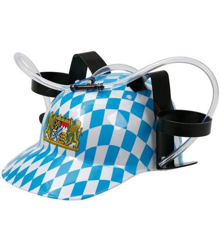 Det som gjør oktoberfesten så festlig, er ikke bare den muntre tyrolermusikken og de fine klærne man får ha på seg. Det skal selvsagt mengder av øl til for en ordentlig vellykket begivenhet. Iført denne praktfulle ølhjelmen kan du drikke fra to bokser på en og samme gang!Ølhjelm Oktoberfest er en blå- og hvitrutet plasthjem med 2 stk. holdere for ølbokser samt 2 stk. slanger. Slangene er gjennomsiktige og føres sammen til én slange som du drikker fra. Foran på hjelmen sitter et fint merke som forestiller to gule løver som holder i et skjold.Størrelse: One size (voksen). ...