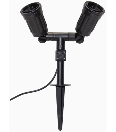 Ett markspyd med to spotlights for utendørs bruk. Vi anbefaler en lyspære PAR38 med E27-sokkel. Lampen har en 5 m gummikabel. Spotlight blir med fordel brukt til å lyse opp trær og busker. Lyspæren selges separat. ...