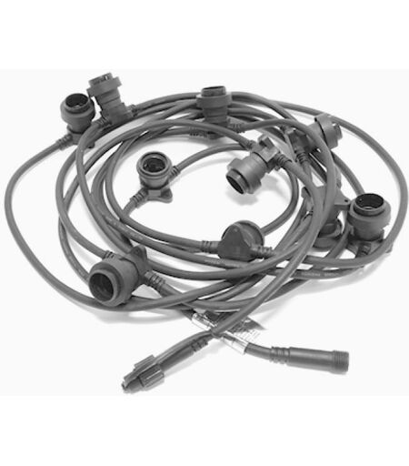 Sammenkoblingsbare lyslenker / lysslynger for glødepærer, halogen eller LED-pærer. Lysslyngen har 10 x B22 sokkler og er 735 cm (75 cm mellom pærer). Glem ikke startkabel, artikelnummer 484-28. Lyspærer er ikke inkludert. Lyslenkerne er beregnet for både innendørs og utendørs-bruk takket være IP44-klassifisering. Denne lyslenke er konstruert for lyskilder på maks 15W. Du kan koble maksimalt 13 stykker av lysslynger med 1 stk startkabel. ...