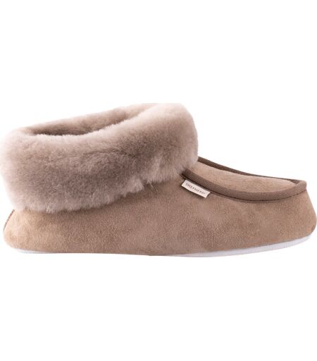 Moa fra Shepherd of Sweden er et par ankelhøye saueskinnstøfler med bred saueskinnskrage for kvinner. Dekorative kantbånd foran i tekstil og myk yttersåle i mokka. Inne-og yttermateriale: 100 % saueskinn Sålen er laget av EVA-gummi ...