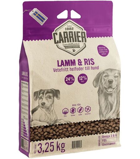 Carrier Lam & Ris – Hvetefritt helfôr for sensitive hunder Carrier Lam & Ris er et svenskprodusert, hvetefritt helfôr som passer for normalt aktive hunder av alle raser. Med lam som eneste kjøttproteinkilde er dette et skånsomt og lettfordøyelig alternativ, spesielt utviklet for hunder med sensitive mager, allergier eller hudproblemer som kløe. Det er laget av førsteklasses råvarer og inneholder glukosamin som støtter hundens leddhelse. Hva er Carrier Lam og Ris?Carrier Lam og Ris er et hvetefritt helfôr for normalt aktive hunder av alle raser. Det inneholder kun lam som kjøttprotein, noe som gjør at det egner seg for hunder med allergier eller sensitive mager. Fôret anbefales også for hunder med kløe og andre hudproblemer. Fordeler med Carrier Lam & Ris Hvetefritt: Perfekt for hunder med sensitiv mage eller fôrintoleranse. Enkeltprotein: Kun lam som kjøttproteinkilde – skånsomt og lettfordøyelig. Førsteklasses råvarer: Laget med lettfordøyelige og næringsrike ingredienser. Støtte for ledd: Inneholder glukosamin som fremmer leddhelsen. Svenskprodusert: Et Super Premium-fôr fra svenske produsenter. Hvilke hunder passer Carrier Lam & Ris for?Dette fôret er et utmerket valg for: Hunder med allergier eller fôrintoleranser. Hunder med kløe eller andre hud- og pelsproblemer. Hunder med sensitive mager som trenger et lettfordøyelig fôr. Normalt aktive hunder av alle raser. Hvorfor velge Carrier Lam & Ris? Carrier Lam & Ris er et balansert helfôr som ikke bare tilfredsstiller hundens næringsbehov, men som også tar hensyn til ulike sensitiviteter. Med enkeltprotein fra lam og et helt hvetefritt innhold, er fôret skånsomt for hunder med sensitive mager eller allergier. I tillegg er det svenskprodusert, noe som garanterer høy kvalitet og næringsrike ingredienser. ...
