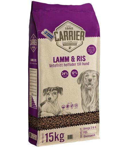 Carrier Lam & Ris – Hvetefritt helfôr for sensitive hunder Carrier Lam & Ris er et svenskprodusert, hvetefritt helfôr som passer for normalt aktive hunder av alle raser. Med lam som eneste kjøttproteinkilde er dette et skånsomt og lettfordøyelig alternativ, spesielt utviklet for hunder med sensitive mager, allergier eller hudproblemer som kløe. Det er laget av førsteklasses råvarer og inneholder glukosamin som støtter hundens leddhelse. Hva er Carrier Lam og Ris?Carrier Lam og Ris er et hvetefritt helfôr for normalt aktive hunder av alle raser. Det inneholder kun lam som kjøttprotein, noe som gjør at det egner seg for hunder med allergier eller sensitive mager. Fôret anbefales også for hunder med kløe og andre hudproblemer. Fordeler med Carrier Lam & Ris Hvetefritt: Perfekt for hunder med sensitiv mage eller fôrintoleranse. Enkeltprotein: Kun lam som kjøttproteinkilde – skånsomt og lettfordøyelig. Førsteklasses råvarer: Laget med lettfordøyelige og næringsrike ingredienser. Støtte for ledd: Inneholder glukosamin som fremmer leddhelsen. Svenskprodusert: Et Super Premium-fôr fra svenske produsenter. Hvilke hunder passer Carrier Lam & Ris for?Dette fôret er et utmerket valg for: Hunder med allergier eller fôrintoleranser. Hunder med kløe eller andre hud- og pelsproblemer. Hunder med sensitive mager som trenger et lettfordøyelig fôr. Normalt aktive hunder av alle raser. Hvorfor velge Carrier Lam & Ris? Carrier Lam & Ris er et balansert helfôr som ikke bare tilfredsstiller hundens næringsbehov, men som også tar hensyn til ulike sensitiviteter. Med enkeltprotein fra lam og et helt hvetefritt innhold, er fôret skånsomt for hunder med sensitive mager eller allergier. I tillegg er det svenskprodusert, noe som garanterer høy kvalitet og næringsrike ingredienser. ...