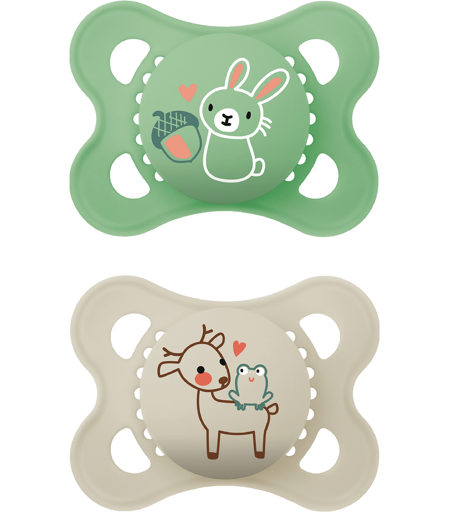 MAM Original Smokk er en klassisk smokk som er utformet for å være skånsom mot barnets hud. MAM Original Smokk har store lufthull og en knudrete innside som reduserer risikoen for hudirritasjon. Sugedelen er laget av den silkemyke MAM SkinSoft™-silikonen, som minner om mors hud. Smokkene leveres med en praktisk oppbevarings- og steriliseringsboks som gjør det enkelt å sterilisere smokkene direkte i mikrobølgeovnen. Skjoldet, knoppen og steriliseringsboksen er laget av biosirkulære materialer, noe som bidrar til en mer bærekraftig fremtid. Til baby fra 0-6 måneder. I fargen grønn og beige, med mønster. Pakken inneholder 2 stk. smokker. ...