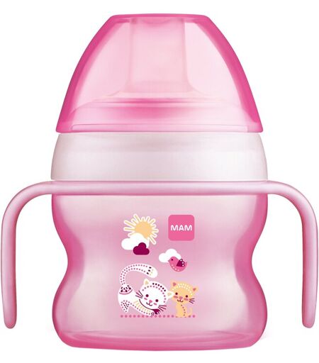 MAM Starter Cup er en drikkekopp til barn med en ekstra myk og lekkasjesikker drikketut. MAM Starter Cup har et sklisikkert og gripevennlig håndtak, er ekstra lett og tilpasset så den er enkel og god å holde for babyen. Den ekstra myke drikketuten er lekkasjesikker og gjør at barnet selv kan styre væskestrømmen. Alle MAM-produkter er fremstilt av BPA- og BPS-frie materialer. Flasken rommer 150 ml. ...