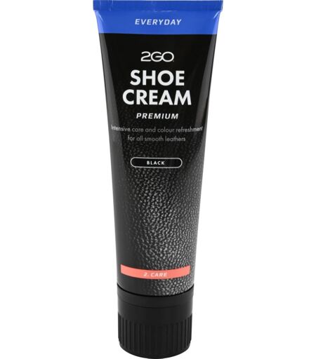 2GO Shoe Cream Svart - 80mlSkokrem fra 2GO i sort. Tilpasset for glatte skinntyper. Skokremen har en fargeaktiverende effekt og gir skinnet ekstra glans og fin glans, samtidig som den pleier. Bruk: Børst/tørk av støv og skitt fra skinnet.Påfør et sparsomt, jevnt lag med skokrem.La tørke og poler opp!Gjenta om nødvendig. ...