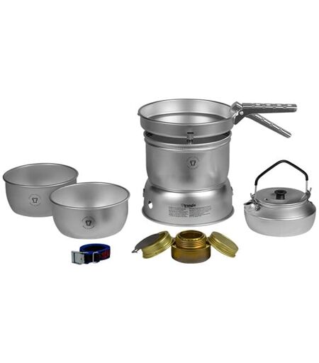 Trangia Stormkjøkken 27-2 UL er et kjøkken som passer godt for enkeltvandrere eller 2 personer. Kjelene er mindre og kaffekannen er tilpasset dette. Et lite, kompakt kjøkken som krever minimalt med plass i ryggsekken. Her kan du også supplere med større leirkjeler som kan plasseres på de utfelte holderne i den øvre vindskjermen. Alle kjøkken i 27-serien inneholder to 1-liters kjeler, en gradert og en uggradert, en 18 cm stekepanne, vindskjerm (øvre og nedre), brenner, tang og reim.Stormkjøkken 27-2 UL er laget av en ny aluminiumslegering, et materiale som er 50 prosent sterkere enn vanlig aluminium. Takket være at materialet er så sterkt, har kjøkkenet kunnet bli tynnere, noe som resulterer i en vektreduksjon på mellom 22-25 prosent. Kjeler og stekepanne i lett aluminium1 Kaffekanne i aluminium2 kjeler på 1 liter hver1 Stekepanne på 18 cmBrennerTang og reim ...
