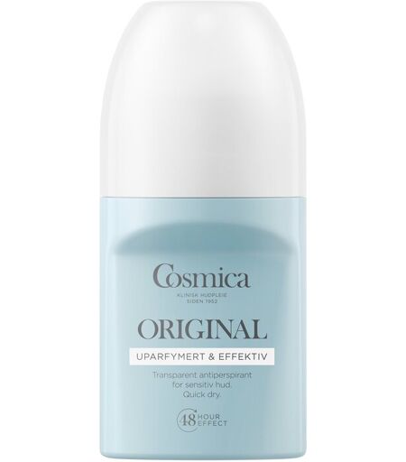 Cosmica Original Antiperspirant uten parfyme er en effektiv transparent, deodorant som er mild mot huden. Effektiv transparent, antiperspirant som er mild mot huden og har en behagelig duft som holder deg frisk hele dagen. Minimerer effektivt svette og vond lukt i 48 timer. Med Quick Dry: Optimalisert formulering med forbedret tørketid og minimert klissete følelse. Velegnet for sensitiv hud. Uten alkohol og parfyme. Dermatologisk testet. ...