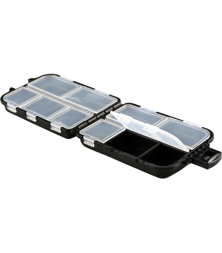 Handy-Box fra iFish er en hendig liten dobbeltsidig oppbevaringsboks med 10 rom som kan åpnes separat. Perfekt for mindre tilbehør. Mål: 10 x 6,5 x 3 cm ...