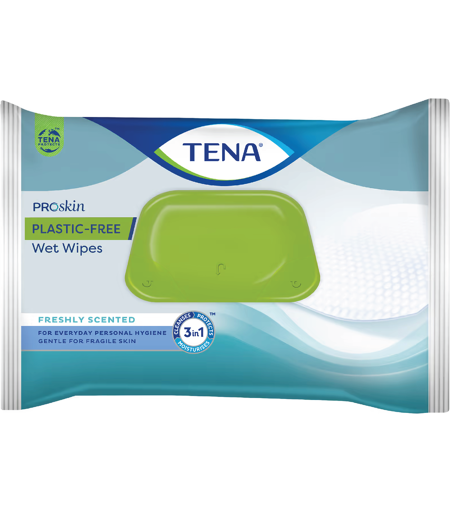TENA Proskin Wet Wipes er våtservietter som rengjør, gjenoppbygger og beskytter huden, til kroppsvask og intimvask. TENA Proskin Wet Wipes er en stor, myk og pH-balansert våtserviett beregnet til intimvask ved bytte av inkontinensprodukter, men kan også benyttes over hele kroppen. Den innholder både vitamin E og aloe vera som bidrar til å gjenoppbygge og beskytte huden. Våtserviettene er et godt alternativ til klut, såpe og vann. Fås i en praktisk, myk pakning. Intimserviettene er laget av non-woven polyester- og viskosefiber. Størrelse 29 x 22 cm. Mildt parfymert. Uten alkohol. ...
