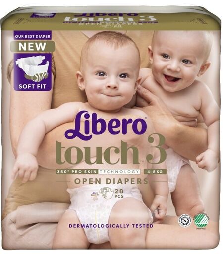 Libero Touch 3 Åpen Bleie, 4-8 kg, 28 stk.