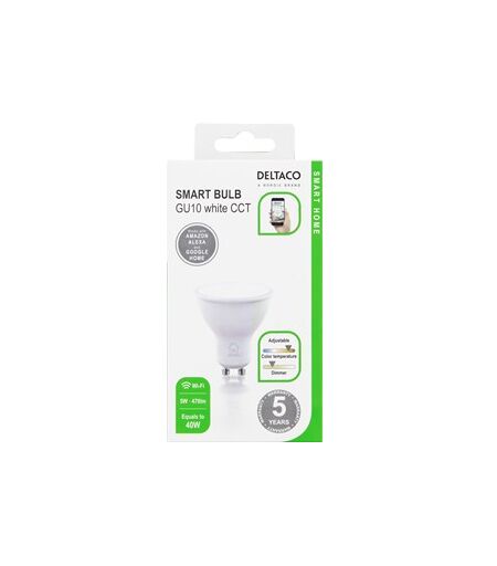 4,5 W / GU10,Kobles til WiFi-nettet,Styres med Deltaco-appen,Juster lysstyrke og fargetemperatur,Støtter stemmestyring, ...