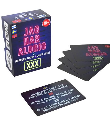 Jag har aldri XXX er en voksen versjon av den gamle klassikeren med samme navn!Spillet inneholder en fin mix av både skitne, morsomme og grove påstander som virkelig setter spørsmålstegn ved deg og dine venners aktiviteter. Perfekt å ta frem på før-festen som en icebreaker eller hvorfor ikke på julaften for å skremme farmor...Spillet inneholder 99 spørsmål og leveres i en enkel pakning med lokk som er enkel å ta med seg.Fakta om Jag Har Aldri XXX Spørrespill: Alder: fra 18 år Spilletid: 15–60 minutter Antall spillere: 2+ Inneholder: 99 stk. kort Instruksjoner og mer informasjon lades enkelt med den vedlagte QR-koden Språk: svensk, norsk og finsk (ikke dansk)EAN: 7333084037710 ...