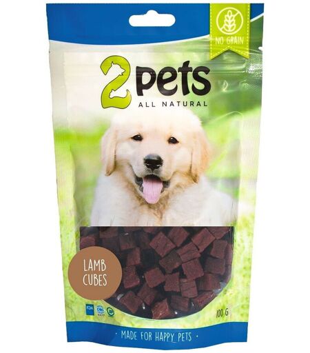 2Pets Cubes med Lam Disse hundegodbitene er fri for kornprodukter og har et høyt kjøttinnhold. De er basert på lam, noe som gir en naturlig god smak som de fleste hunder liker. Lam er en lettfordøyelig proteinkilde som hunder sjeldent er allergiske mot. 2Pets Cubes med Lam er perfekt å ha med seg i lommen på lufteturen. Når du vil gi vofsen din en belønningsbit, kan du enkelt fiske frem en liten lammekube – så blir lykken stor! Husk at godbiter aldri er et alternativ til et balansert kosthold – det skal alltid gis ved siden av som en bonus eller belønning. Uansett hvor høyt den firbeinte vennen din elsker godbiter, er det du som eier som har ansvaret for at den holder seg sunn og frisk. Les informasjonen på pakken, og husk at alle dyr er individer – tilpass inntaket etter det som passer for nettopp din venn! ...
