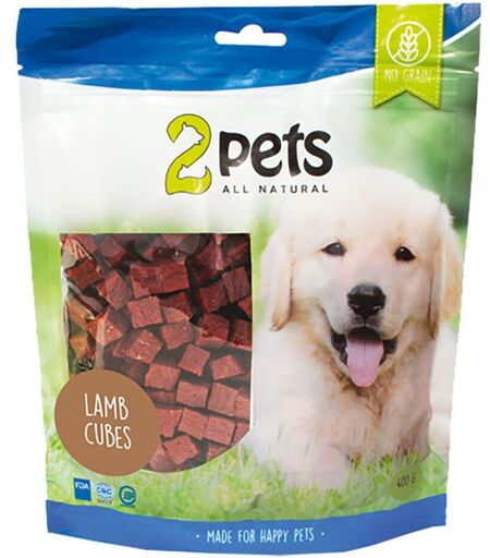 2Pets Cubes med Lam Disse hundegodbitene er fri for kornprodukter og har et høyt kjøttinnhold. De er basert på lam, noe som gir en naturlig god smak som de fleste hunder liker. Lam er en lettfordøyelig proteinkilde som hunder sjeldent er allergiske mot. 2Pets Cubes med Lam er perfekt å ha med seg i lommen på lufteturen. Når du vil gi vofsen din en belønningsbit, kan du enkelt fiske frem en liten lammekube – så blir lykken stor! Husk at godbiter aldri er et alternativ til et balansert kosthold – det skal alltid gis ved siden av som en bonus eller belønning. Uansett hvor høyt den firbeinte vennen din elsker godbiter, er det du som eier som har ansvaret for at den holder seg sunn og frisk. Les informasjonen på pakken, og husk at alle dyr er individer – tilpass inntaket etter det som passer for nettopp din venn! ...