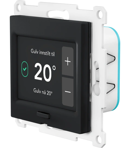 Plejd Termostat for SG TRM-01-AB Sort TRM-01 er en termostat for elektrisk gulvvarme med en berøringsskjerm for å styre og vise temperatur og varmemodus. Den kan tåle en last på inntil 16A, har innebygd romføler og medfølgende gulvføler. Den kan også brukes med eksisterende gulvføler eller som regulator (PWM). TRM-01 kan automatiseres for energisparing, gjennom f.eks. dag- og nattesenking. Med en Gateway (GWY-01, ikke inkludert) kan produktet fjernstyres. Smarte funksjoner Kontroller temperaturen automatisk med tidsplaner, scenarier eller forskjellige driftsmoduser. Bruk dag- og nattesenkingsfunksjonen for å spare energi når du sover eller er borte hjemmefra. Feriemodus Aktiver feriemodus for å justere temperaturen automatisk når du er borte. Funksjonen hjelper deg med å spare energi og sørger for en behagelig temperatur når du kommer hjem. Krever Gateway. Enkel konfigurering Tiden med kompliserte regulatorer og innstillinger er i dag en saga blott. Med vår kraftige, men enkle, app gjøres innstillingene med noen få klikk. Mesh Alle produktene våre kommuniserer med hverandre gjennom vår robust trådløse mesh-teknologi. Dette betyr at du kan begynne i det små og legge til flere produkter etter behov, noe som passer perfekt til både renoveringer og nybygging. Tekniske data Beregnet batteritid: 10 års gangreserve (1xCR1616) Omgivelsestemperatur: -10 til +35 °C IP-grad: IP20 Display: 320×240 LCD, kapasitive berøring Driftsmoduser: Termostat/Regulator Termostat: 5–40 °C Regulator: 0–100 % PWM Produktblad Manual Doc ...
