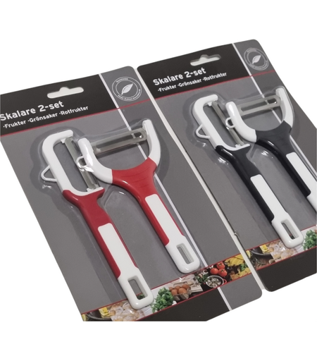 2pk med praktiske skrellere for frukt, grønnsaker og rotfrukter. For eksempel poteter og gulrot. Kommer i farge som er hvit&sort; og hvit&rød; (sendes tilfeldig) ...