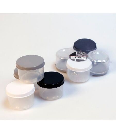4stk små runde plastbokser som er laget av matsikkert materiale. Kommer med skrulokk i ulik farger ellers gjennomsiktige slik at du enkelt ser hva som er i de. Størrelse: 60x45mm Alle våre produkter er trygge i bruk og overholder standarder og sendes fra vårt lager i Norge med lynrask levering. ...